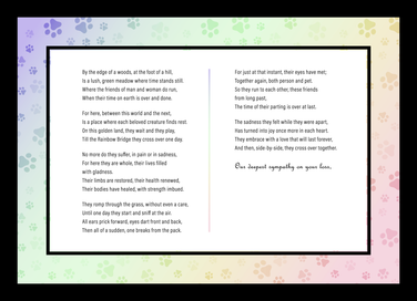 Personalized pet sympathy cards to let clients know you really care. Add your logo to the back of each card.